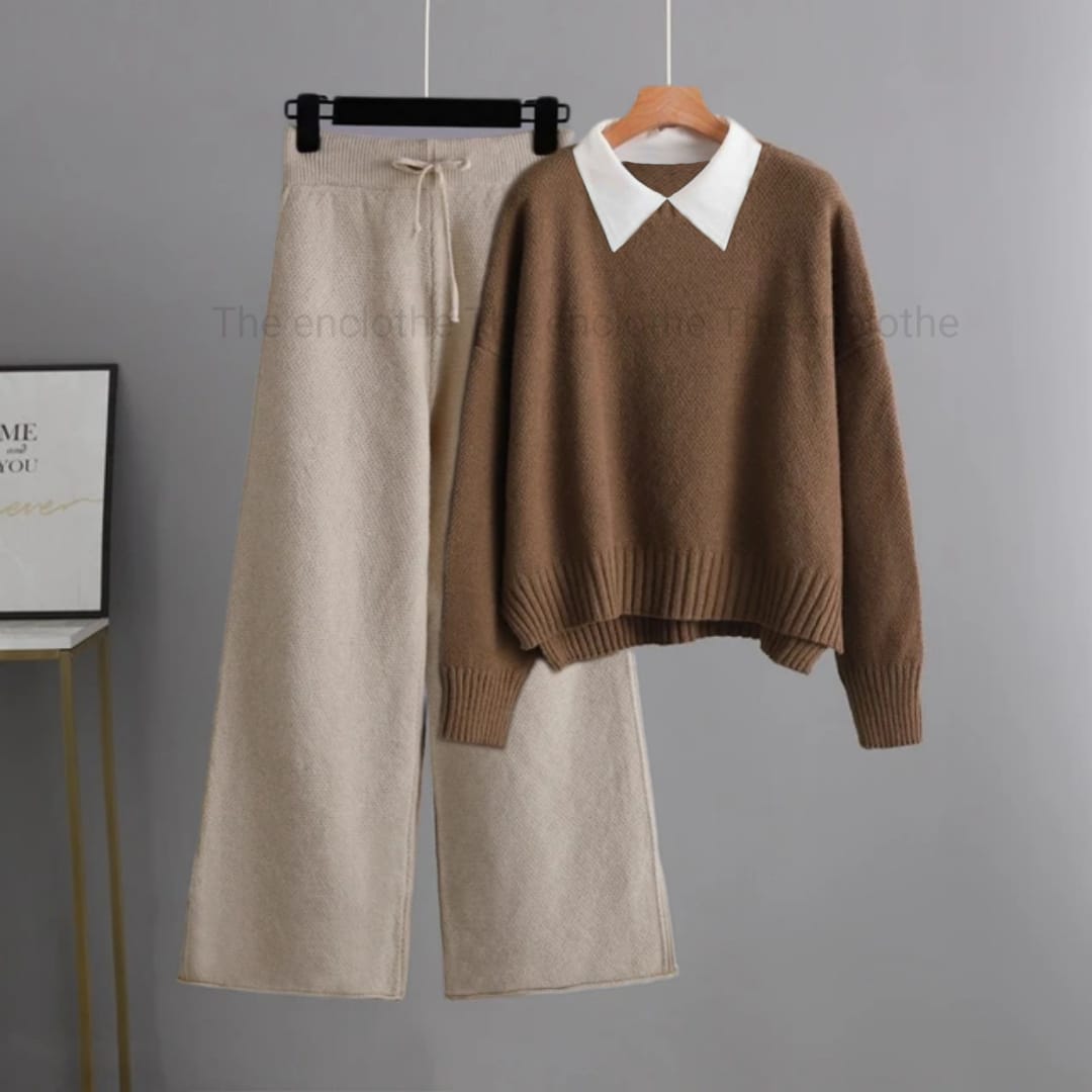 Experience the perfect blend of comfort and chic style with our unique Collar sweatshirt and flapper trousers set. The cozy sweatshirt, crafted from soft, high-quality fabric, provides warmth and ease, featuring a relaxed fit that is perfect for any casual occasion. Paired with our flapper trousers, which are designed with a high waist and a wide-leg silhouette for a flattering, flowy look, this outfit effortlessly combines a laid-back vibe with a touch of elegance. Ideal for both lounging and stepping out, this set offers versatility and style for every day. Elevate your wardrobe with this trendy combination that promises comfort without compromising on fashion.