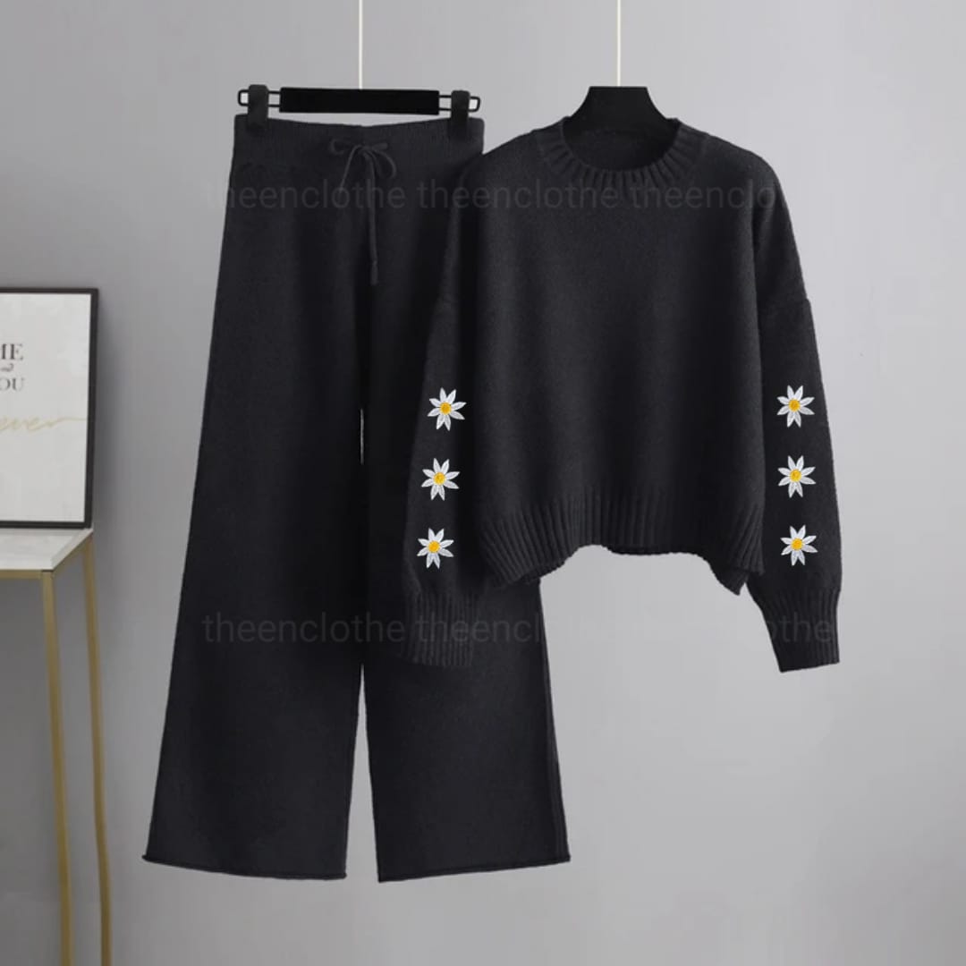 Embroidery sweatshirt with flapper trouser