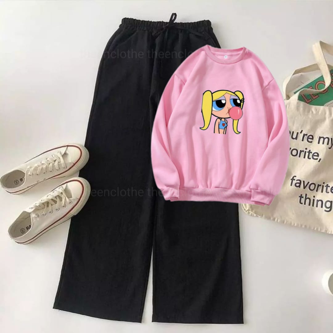 This combination of a cozy sweatshirt paired with stylish flapper trousers brings both warmth and elegance to your winter wardrobe. The soft, comfortable fabric of the sweatshirt offers a relaxed fit, perfect for layering or wearing on its own during chilly days. Meanwhile, the black flapper trousers add a touch of sophistication with their flowing design, providing a flattering silhouette that can effortlessly transition from casual daytime wear to a more refined evening look. Together, this pairing offers versatility and style, making it an essential part of your winter collection
