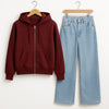 Zipper hoodie with iceblue wide leg jeans creates a relaxed yet stylish outfit. The hoodie is made from soft fleece cotton, ensuring warmth and comfort for all-day wear. Paired with denim fabric wide leg jeans in an iceblue shade, the look balances casual ease with a modern touch. This combination is perfect for effortless everyday styling while keeping comfort a priority.