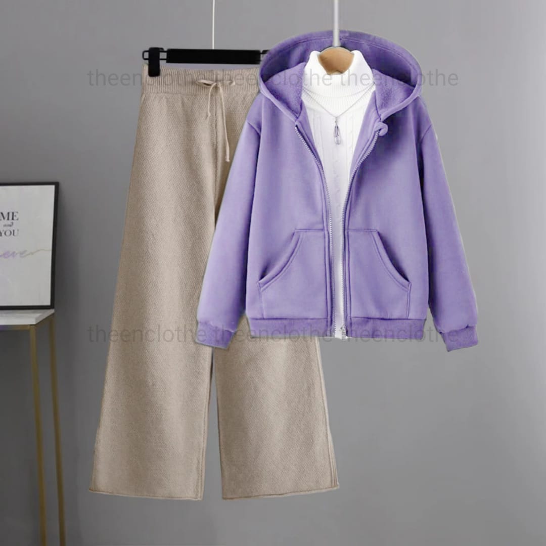 Hoodies paired with trousers create a versatile and stylish combination that blends comfort with a refined edge, suitable for various occasions. This pairing effortlessly balances the relaxed, cozy feel of a hoodie often made from soft materials like cotton or fleece with the structured look of trousers, whether they are slim-fit jeans, chinos, joggers, or tailored pants. Perfect for both casual and semi-casual settings, this look can be easily dressed up with accessories and smart footwear or kept low-key with sneakers for a more laid-back vibe. Overall, hoodies with trousers offer a fashionable, practical choice for those who value both comfort and style in their everyday wear.