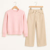 This outfit combines a cozy fleece cotton sweatshirt with stylish beige wide leg jeans. The sweatshirt offers a soft and comfortable feel, perfect for relaxed or casual days. Paired with wide leg jeans made from durable denim fabric, the look balances comfort and elegance. The beige tone adds a touch of warmth and sophistication, making this outfit ideal for an effortlessly chic everyday style.