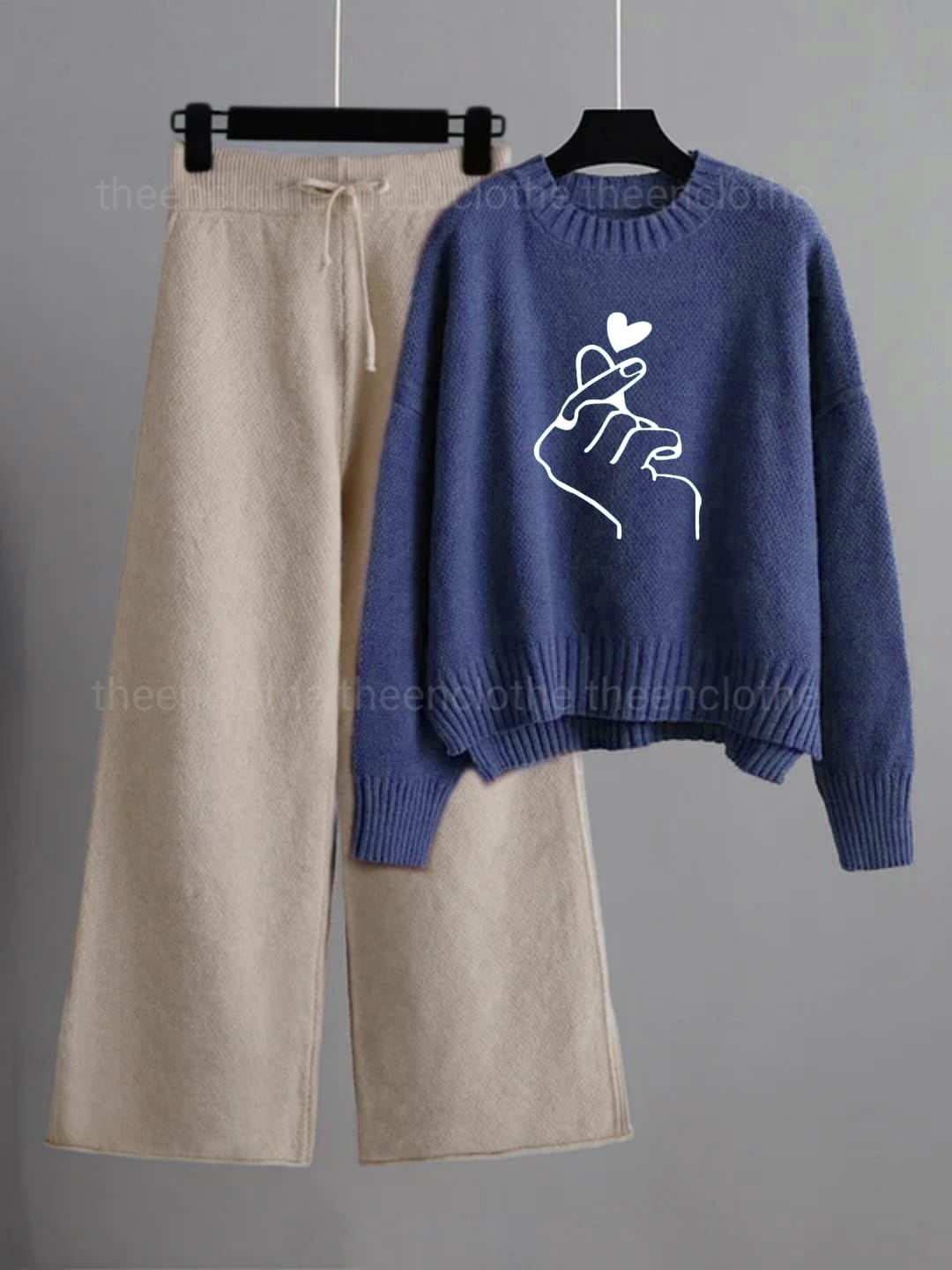 Experience the perfect blend of comfort and chic style with our unique sweatshirt and flapper trousers set. The cozy sweatshirt, crafted from soft, high-quality fabric, provides warmth and ease, featuring a relaxed fit that is perfect for any casual occasion. Paired with our flapper trousers, which are designed with a high waist and a wide-leg silhouette for a flattering, flowy look, this outfit effortlessly combines a laid-back vibe with a touch of elegance. Ideal for both lounging and stepping out, this set offers versatility and style for every day. Elevate your wardrobe with this trendy combination that promises comfort without compromising on fashion.