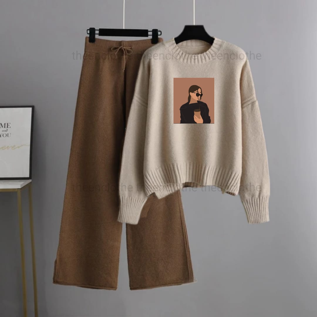 Experience the perfect blend of comfort and chic style with our unique sweatshirt and flapper trousers set. The cozy sweatshirt, crafted from soft, high-quality fabric, provides warmth and ease, featuring a relaxed fit that is perfect for any casual occasion. Paired with our flapper trousers, which are designed with a high waist and a wide-leg silhouette for a flattering, flowy look, this outfit effortlessly combines a laid-back vibe with a touch of elegance. Ideal for both lounging and stepping out, this set offers versatility and style for every day. Elevate your wardrobe with this trendy combination that promises comfort without compromising on fashion.
