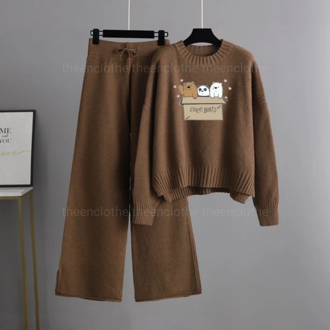 Experience the perfect blend of comfort and chic style with our unique sweatshirt and flapper trousers set. The cozy sweatshirt, crafted from soft, high-quality fabric, provides warmth and ease, featuring a relaxed fit that is perfect for any casual occasion. Paired with our flapper trousers, which are designed with a high waist and a wide-leg silhouette for a flattering, flowy look, this outfit effortlessly combines a laid-back vibe with a touch of elegance. Ideal for both lounging and stepping out, this set offers versatility and style for every day. Elevate your wardrobe with this trendy combination that promises comfort without compromising on fashion.